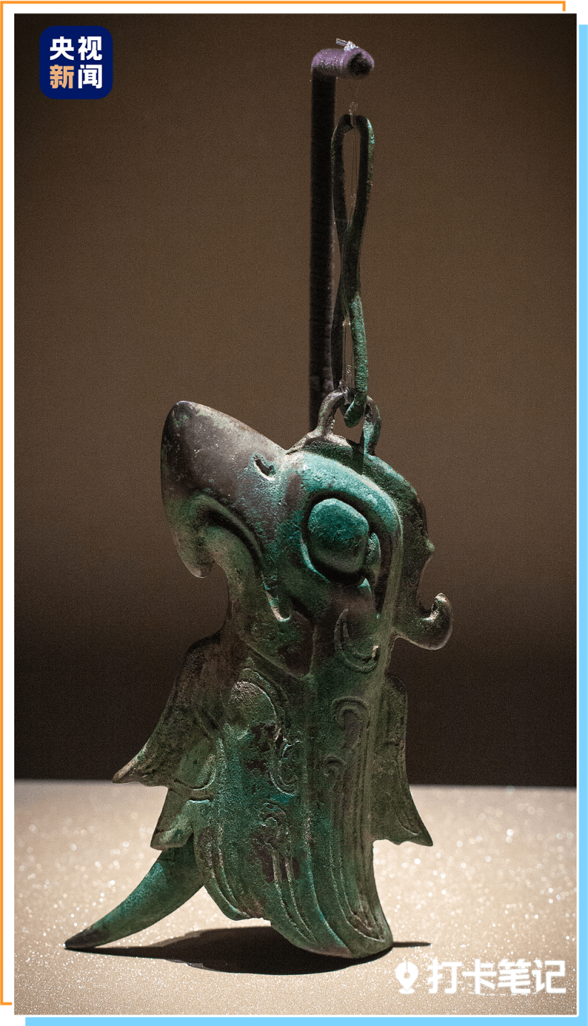 卷鼻结界兽的形象则综合了青铜大面具和青铜鹰形铃的元素,它卷卷的鼻子与青铜鹰形铃的嘴部造型极为相似。