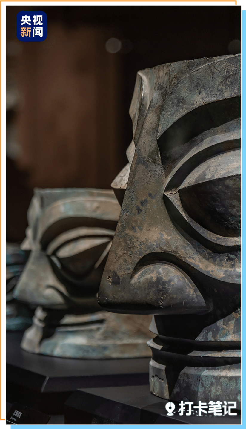 可爱的大粗眉、蒜头鼻结界兽,灵感来自位于四川广汉三星堆博物馆的戴金面罩青铜人头像和青铜大面具。