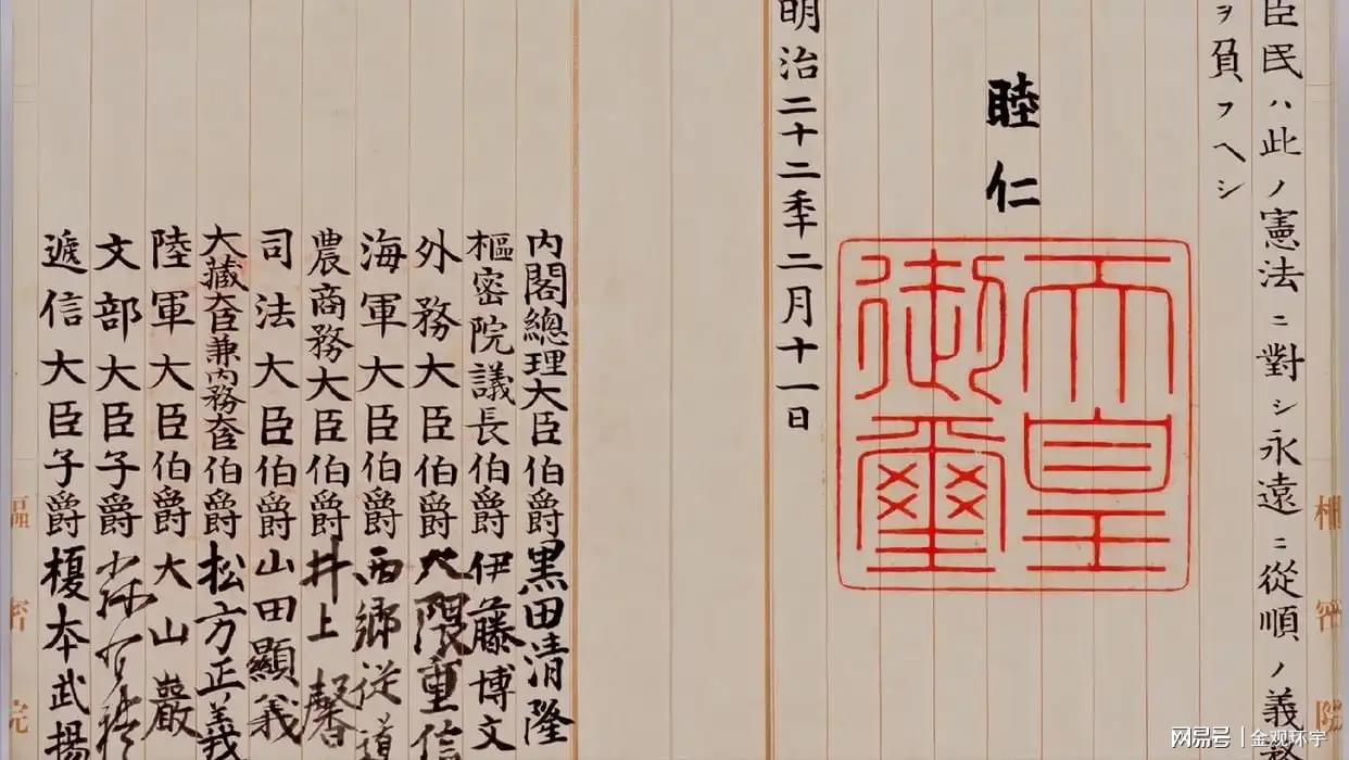 凯蒂斯强调,起草宪法,在结构上要以明治宪法为参照,然后由日本政府来发布。