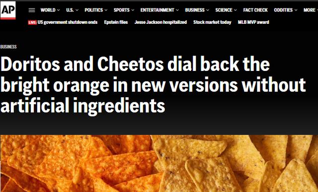 【环球网消费综合报道】据美联社消息,在消费者健康意识日益增强和监管压力不断加大的背景下,零食行业正经历一场深刻的配方升级。百事可乐公司周四宣布,将为其旗下两大标志性零食品牌——多力多滋和奇多——推出新版产品,彻底去除人工香料和色素。这一举措不仅是品牌自身的一次大胆尝试,更折射出整个食品行业在应对健康诉求和法规变化时的战略转向。